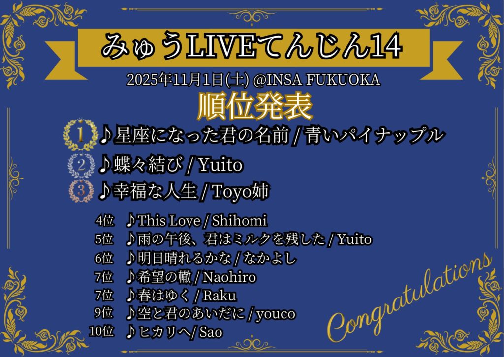 『みゅうLIVEてんじん14』順位発表!!!