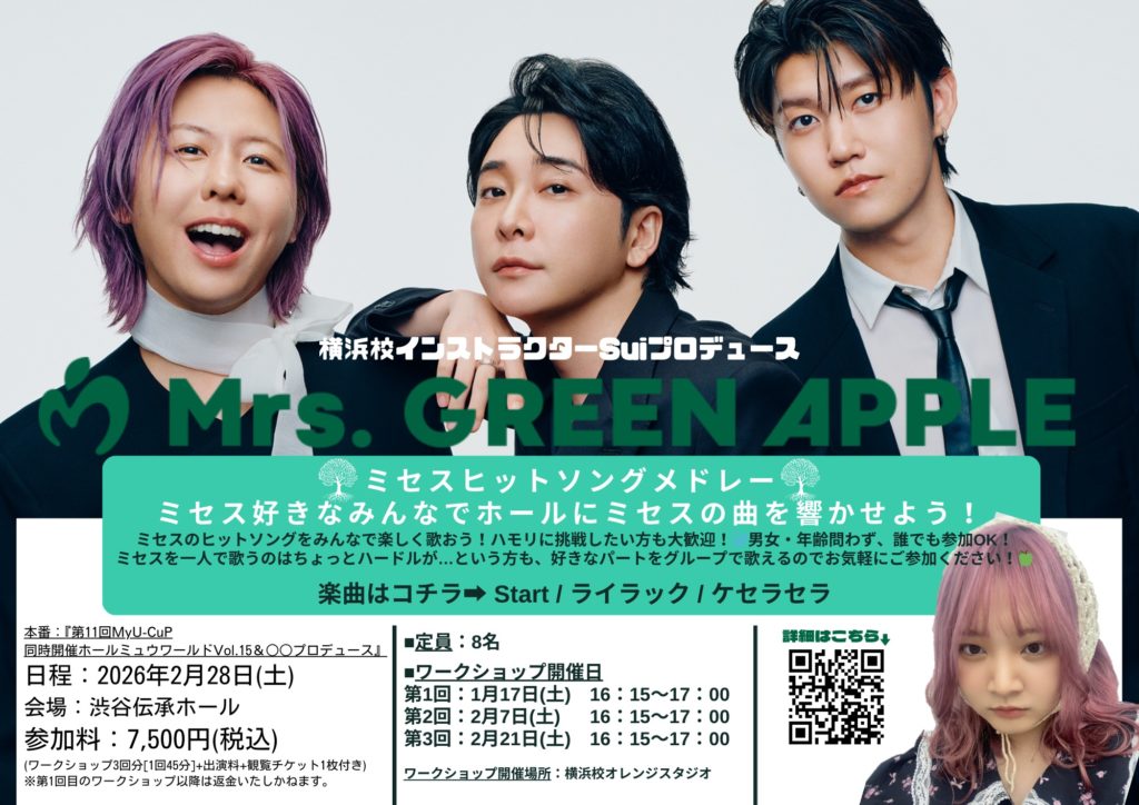 ミセス好きなみんなでホールにミセスの曲を響かせましょう♪