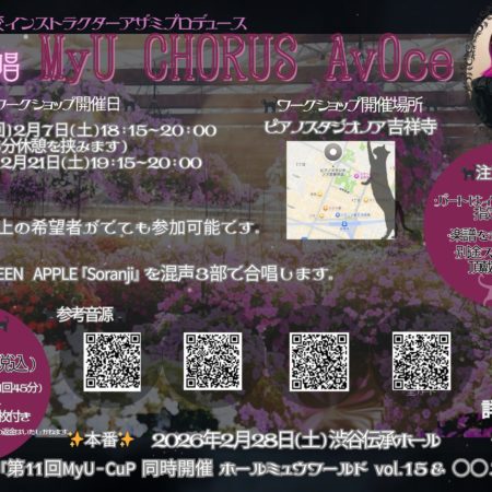 blog 投稿日:2025年11月28日2026年2月28日(土)に『第11回MyU-CuP ホールミュウワールド vol.15 』の開催[…]