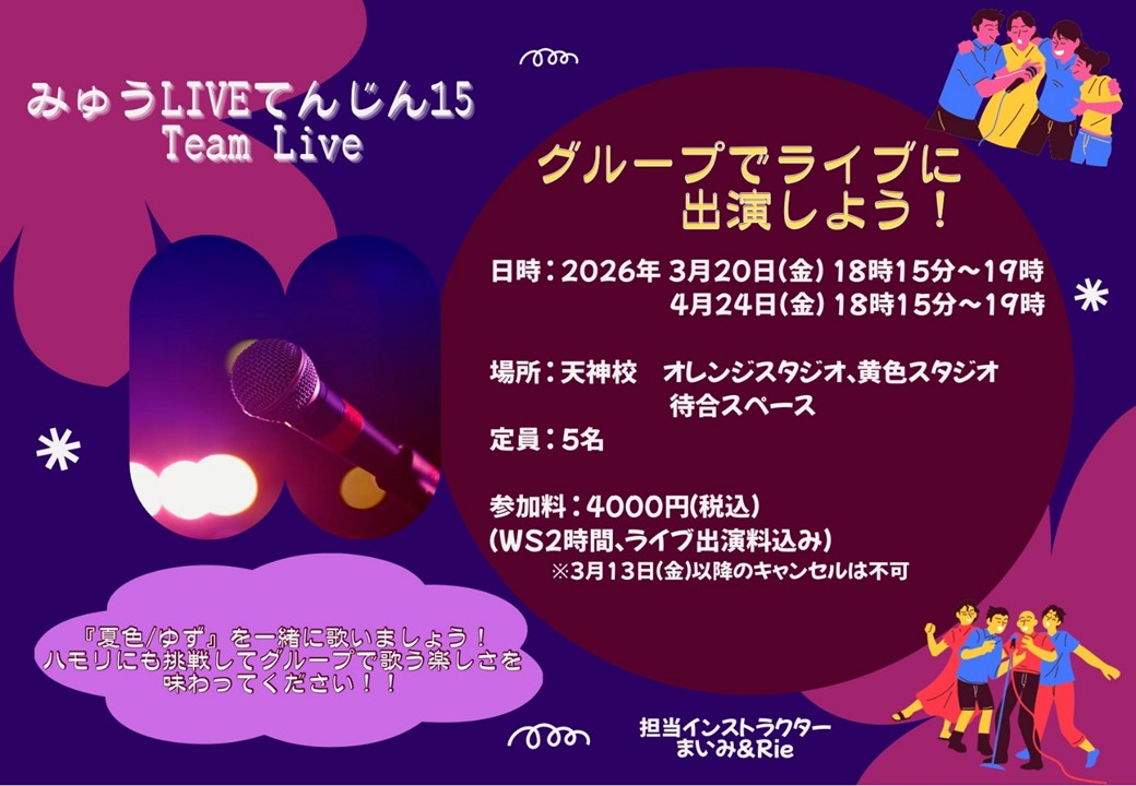 『みゅうLIVEてんじん15』にチームライブとして出演できます★