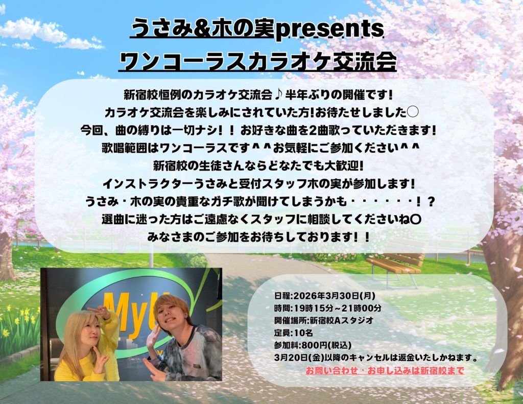 内容:ワンコーラスで、お1人2曲ずつ歌っていただきます!